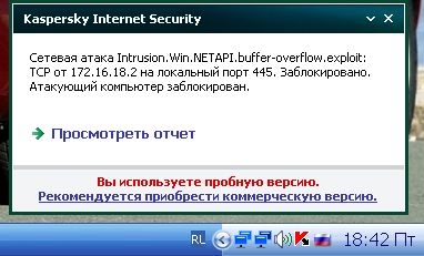 Ответ по теме. На твою машину идут атаки из локалки (на адреса глянь). Я такое наблюдаю много раз за день. Там же стоит заблокировано, можеш не переживать, каспер временно блочит адрес с которого идет атака. У тебя на компе каспер не даст червям забраться.